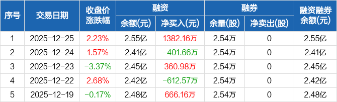 上工申贝:融资净买入1382.16万元,融资余额2.55亿元(12-25)