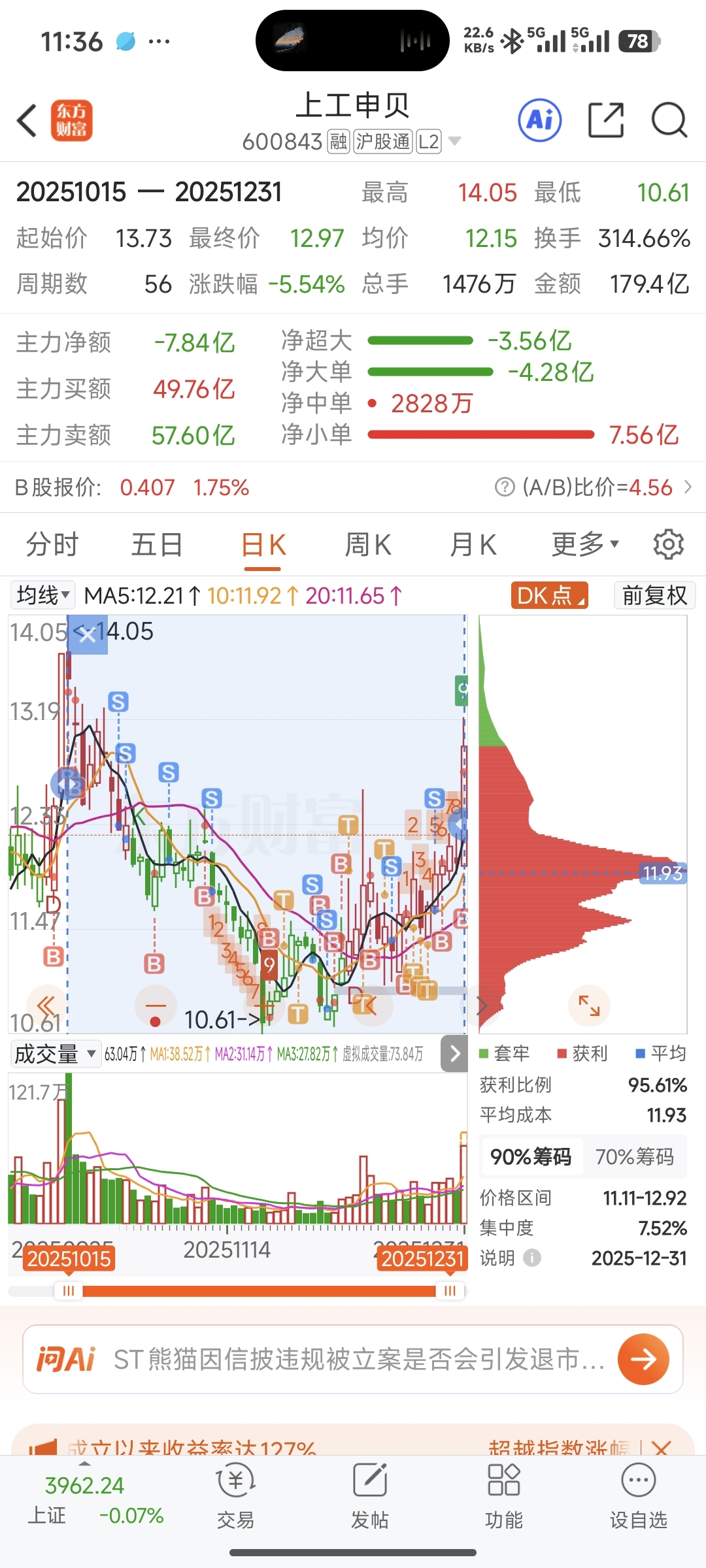 $上工申贝(SH600843)$ 从15号到现在总跌幅-5有借壳预期吗