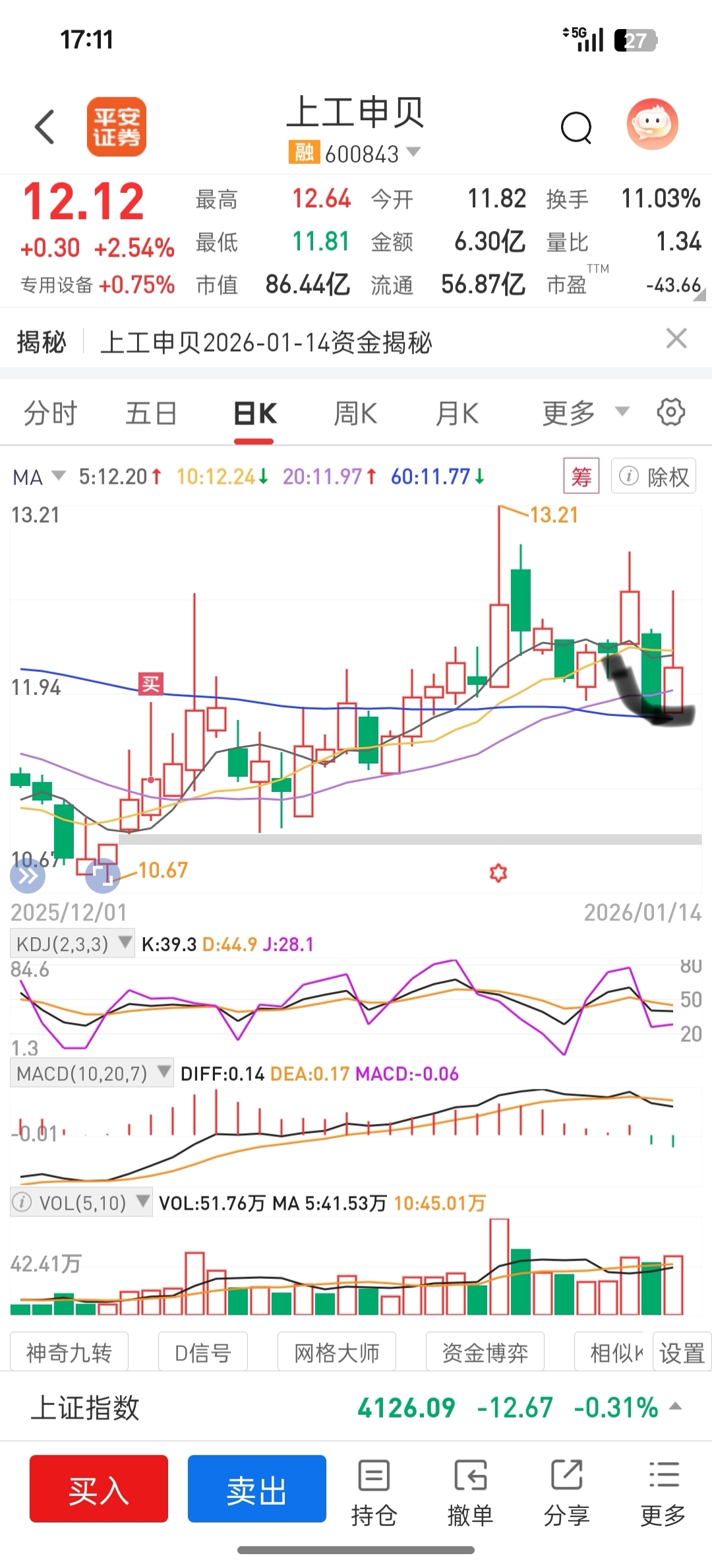 $上工申贝(SH600843)$ 已经站上20日线,今天突破五日线,明天站上10日线
