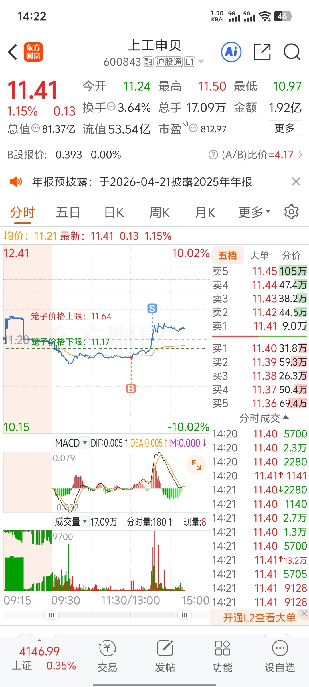 $上工申贝(SH600843)$ 做t水平一如既往的烂。t掉九分,坐等14#复盘记录#