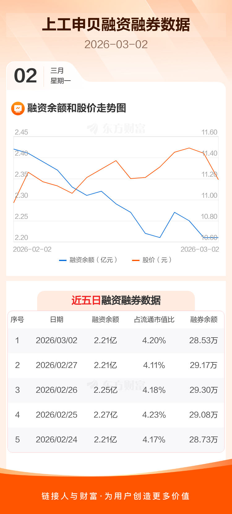 交易所最新数据显示,上工申贝于2026年3月2日获融资买入946.79万元,融资偿还951.24万元,当日融资净偿还4.45万元。目前,该股融资余额2.21亿,占流通市值比例为4.20%。