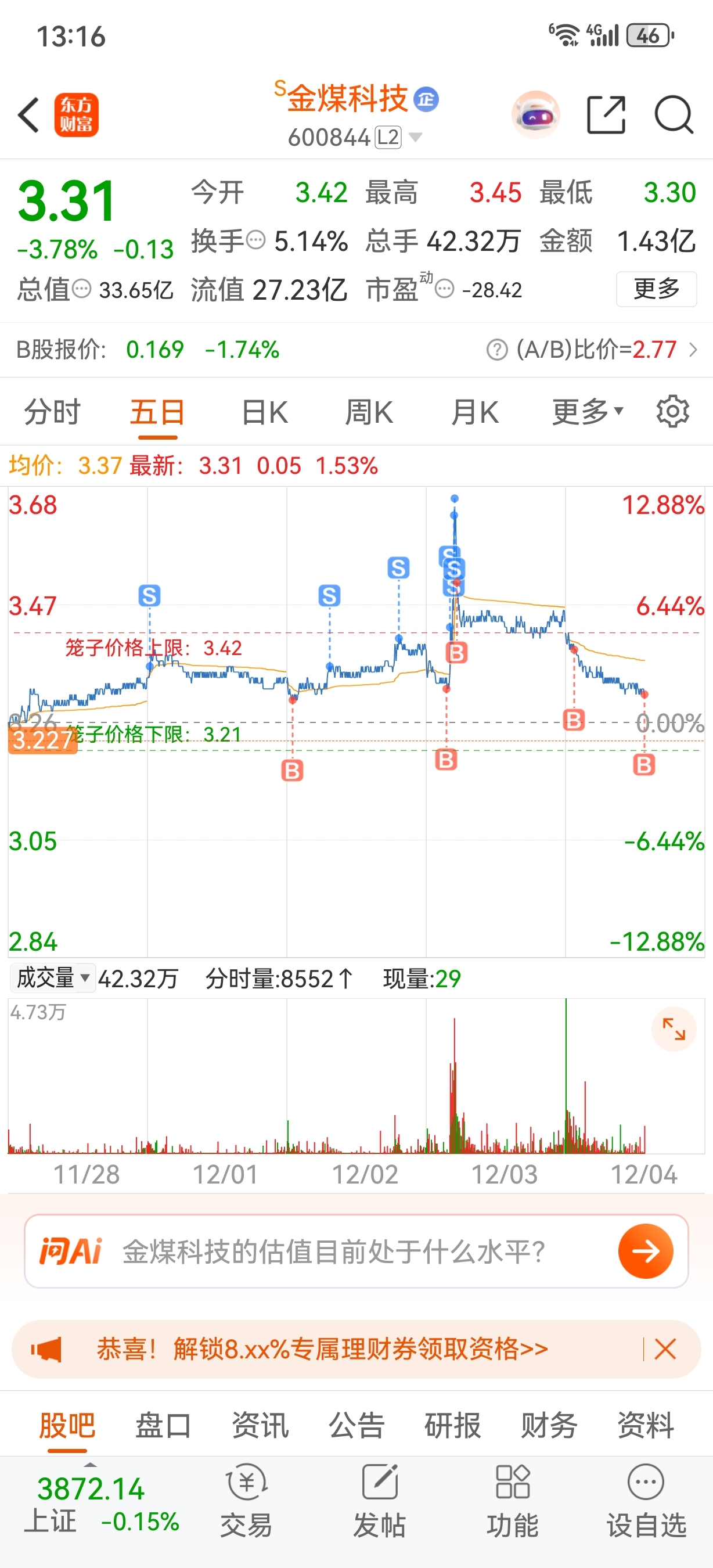 $金煤科技(SH600844)$ 把昨天跑的接回来了,剩下的交给时间!