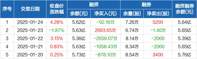 宝信软件:融资净偿还92.16万元,融资余额5.62亿元(01-24)