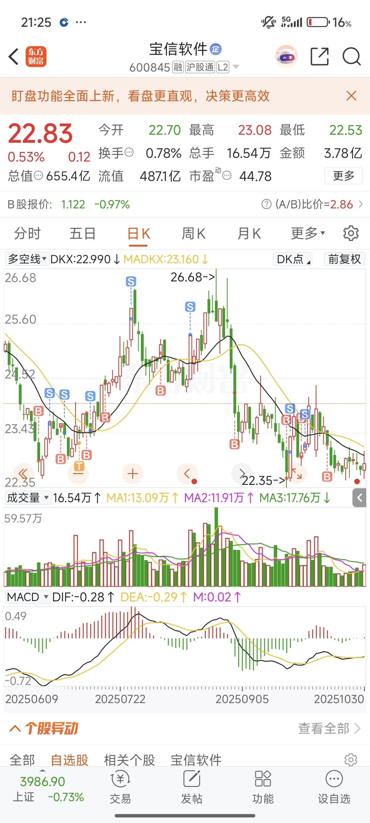 $宝信软件(SH600845)$ 7月份赚了5个多点没舍得卖,现在亏9个点,更不会走了