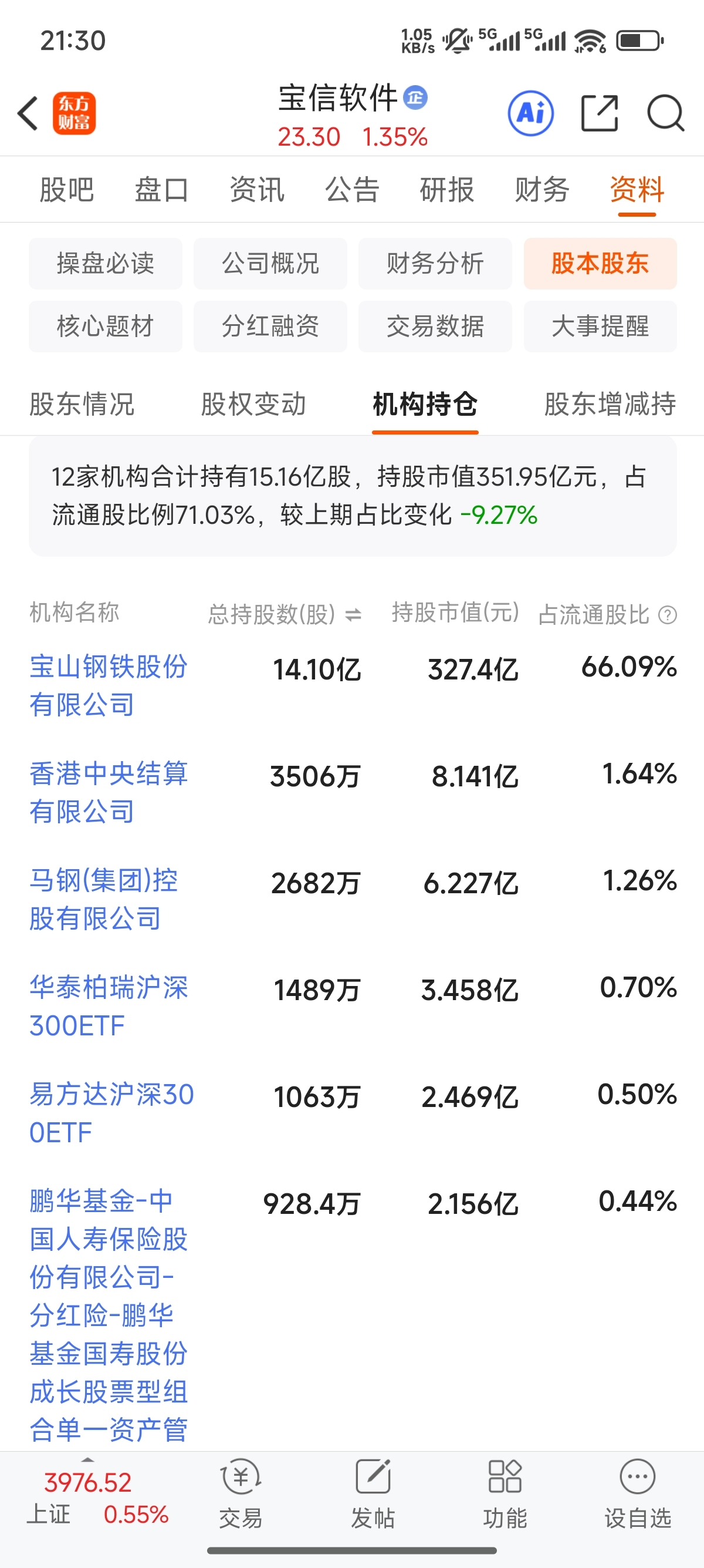 $宝信软件(SH600845)$ 宝山钢铁公司就持有了66%的流通股。感觉很难起来,有哪个主力那么傻,去给别人抬轿子啊。