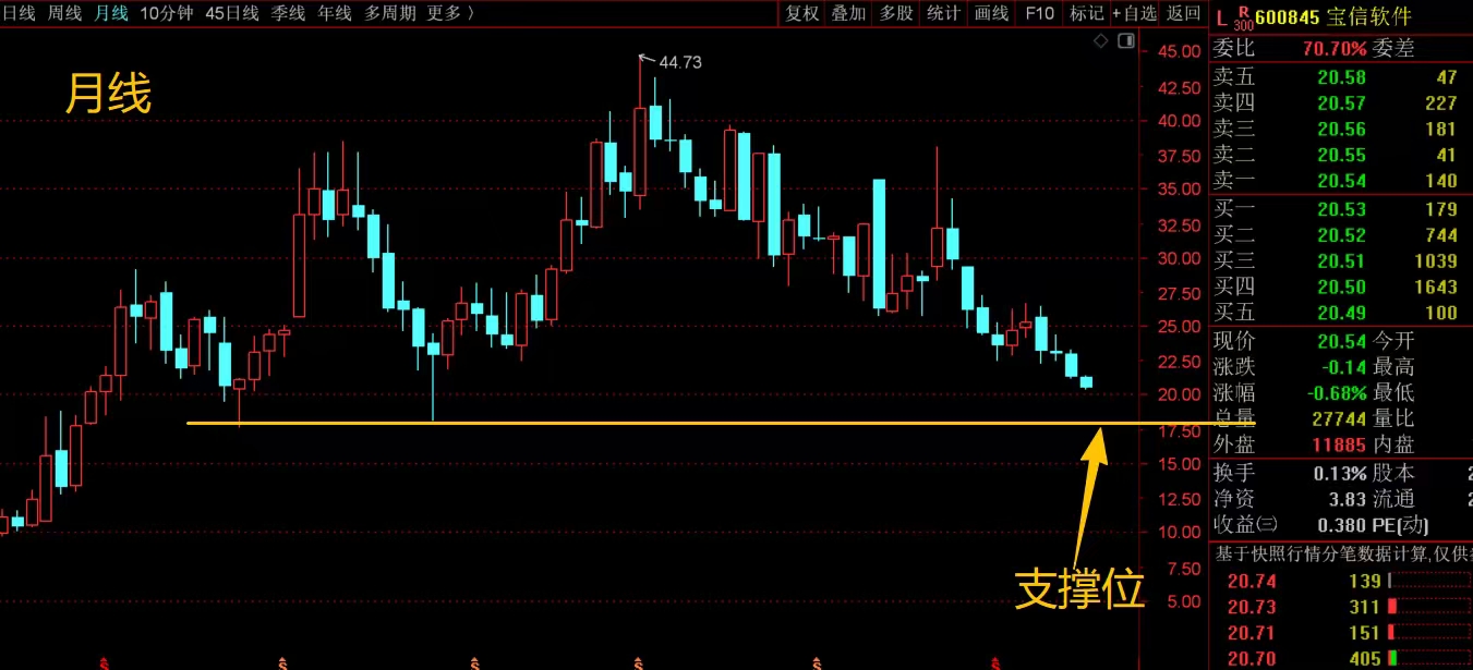 $宝信软件(SH600845)$ 中期趋势比较难,一路向下调整回落,没有很好的参与机会。这里只能看月线,继续回落的话,月线看脚底历史前期低位17.69-18.18附近,能回调到那个位置,可以看看是否有支撑,能稳住就看有没有机会做个反抽动作,并且只能尝试性仓位,如果稳不住那就没戏了,不考虑参与。#复盘记录# #炒股日记#