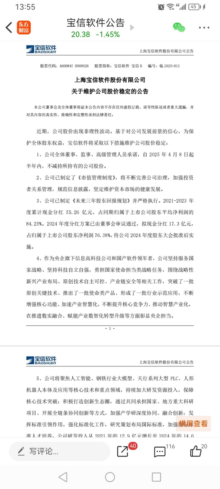 $宝信软件(SH600845)$ 4月8号维护股价稳定的公告,董事会承诺的有没有实现,是不是构成欺诈,大家说说看!