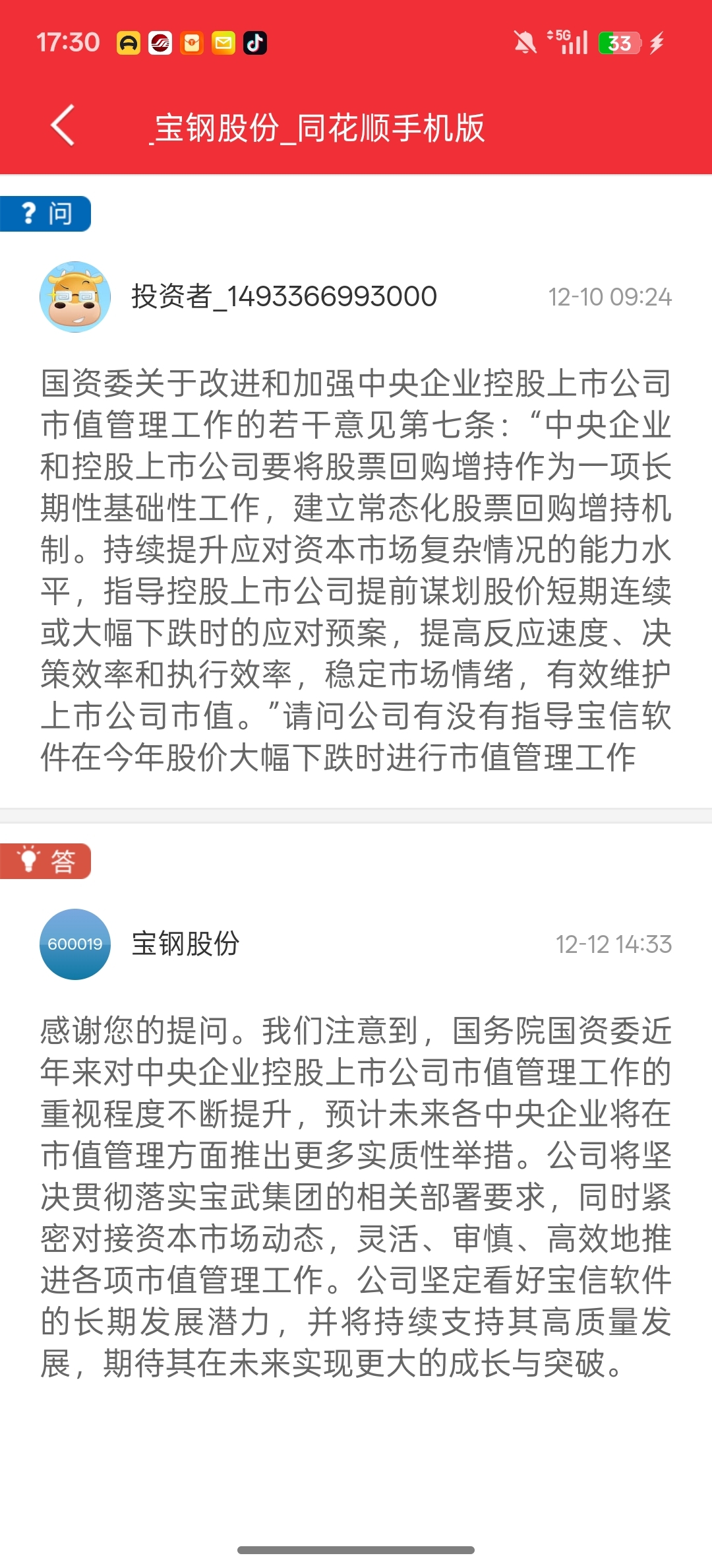 其实股价这么跌宝钢也心急发文说看好宝信未来前景。会帮助宝信高质量发展。十五五政策