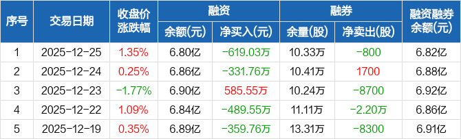 宝信软件:融资净偿还619.03万元,融资余额6.8亿元(12-25)