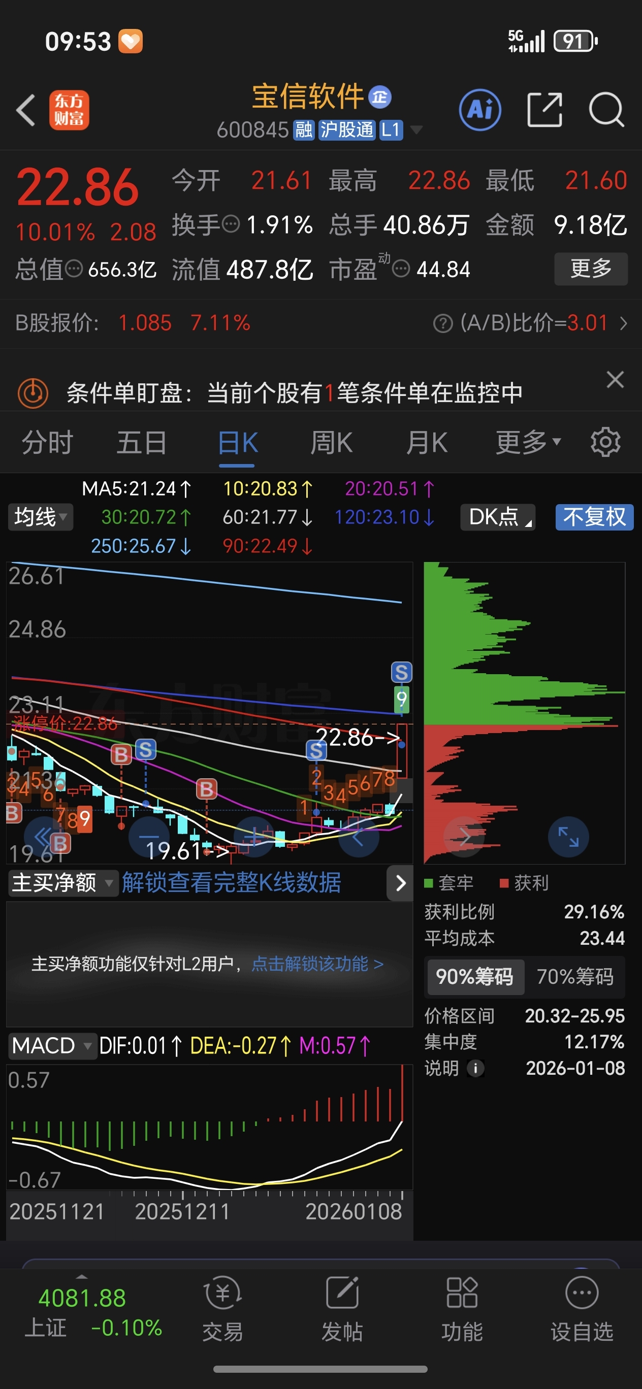 $宝信软件(SH600845)$ 坚守终有收获,抄主力的底,回本减三成。