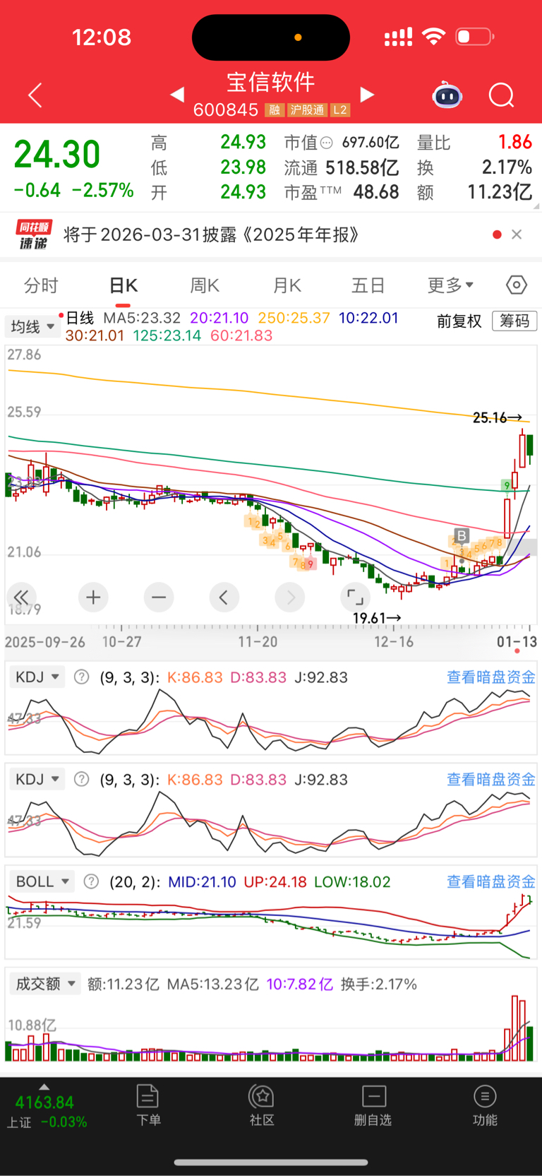 $宝信软件(SH600845)$ 是技术性调整