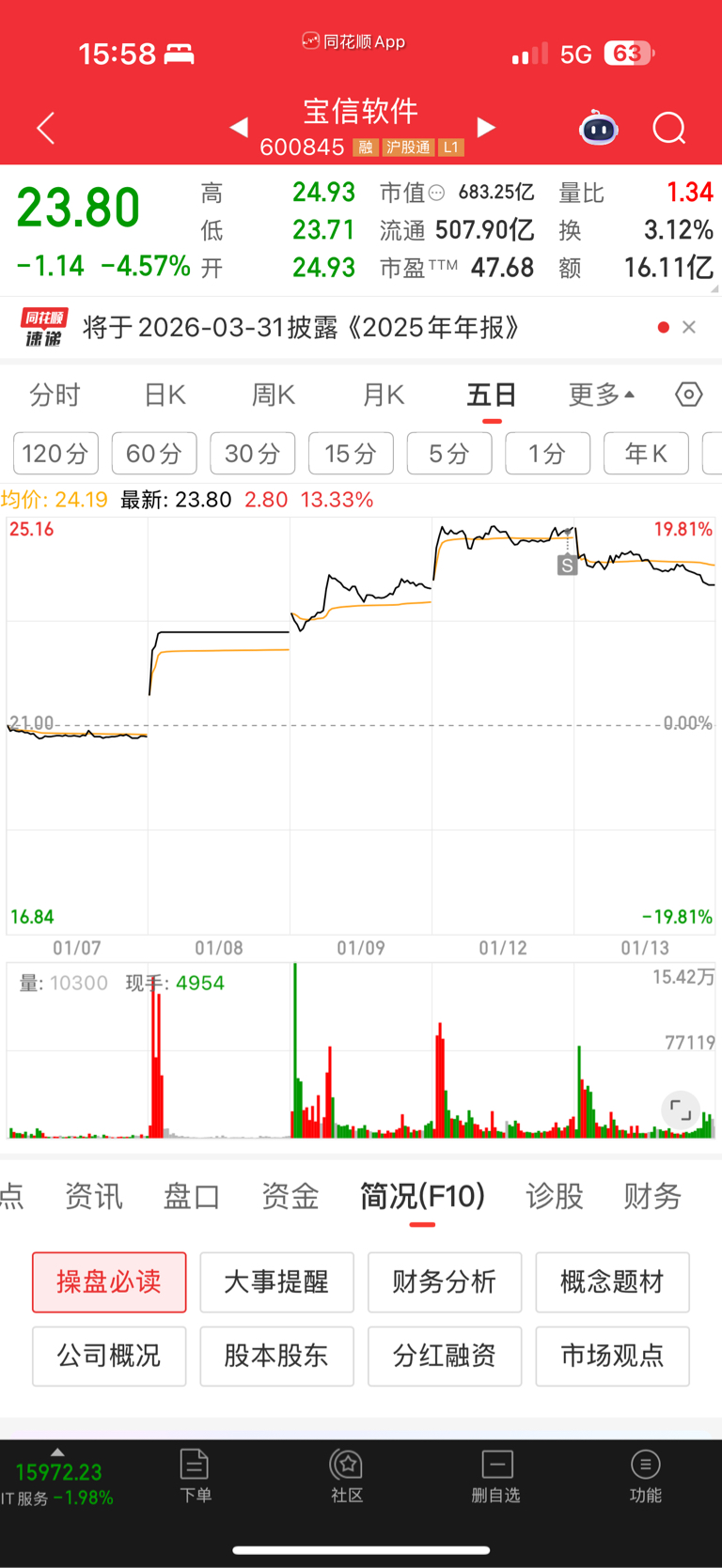 $宝信软件(SH600845)$ 昨天走了,今天想买一点,犹豫了一下,还是明天买吧