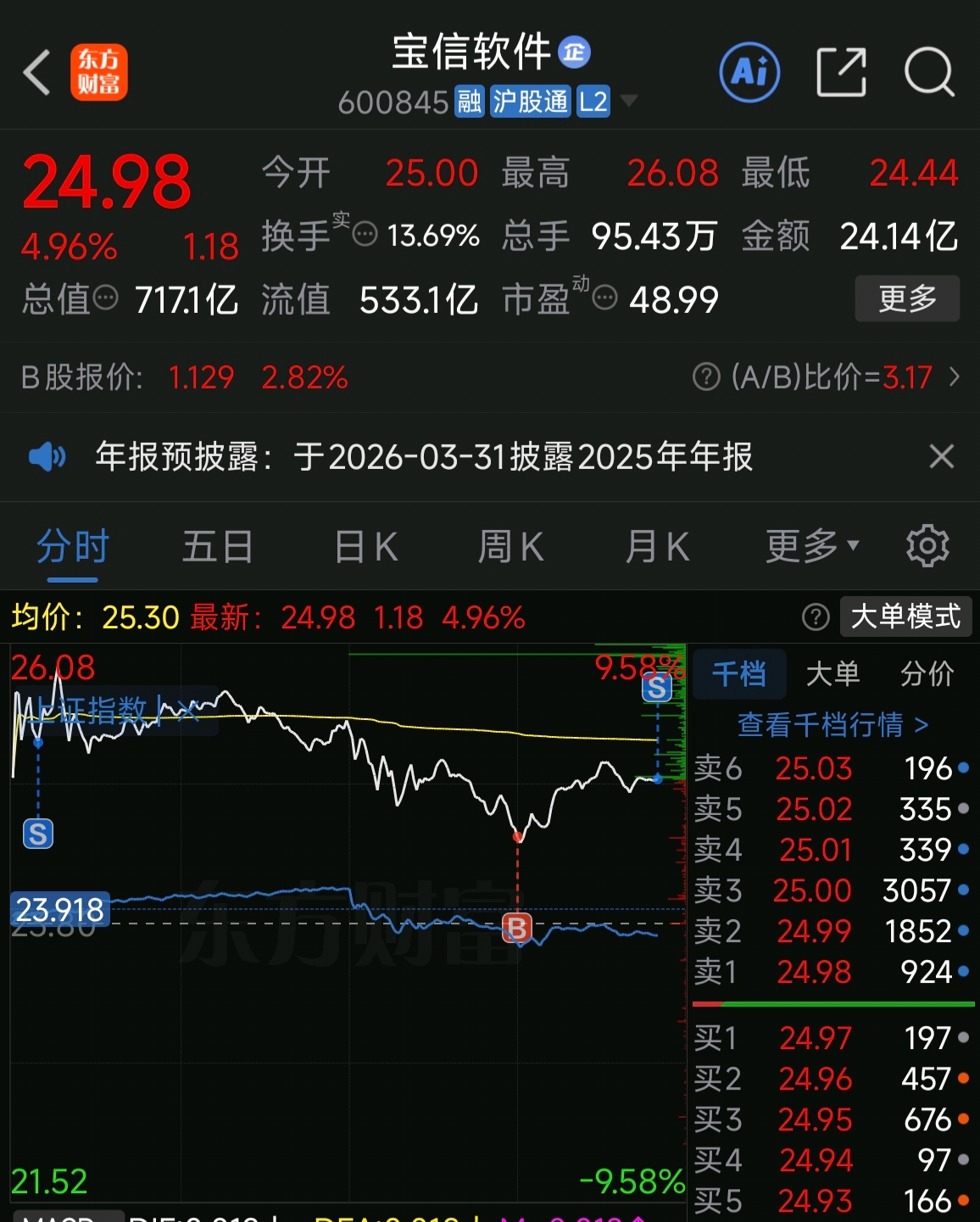$宝信软件(SH600845)$ 收工了,明天再说