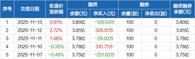 同济科技:融资净偿还129.54万元,融资余额3.8亿元(11-13)