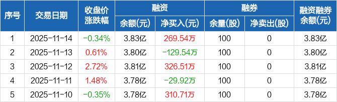 同济科技:融资净买入269.54万元,融资余额3.83亿元(11-14)