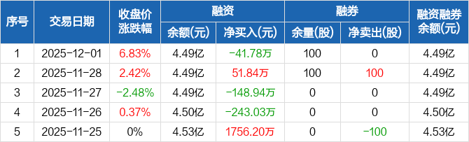 同济科技:融资净偿还41.78万元,融资余额4.49亿元(12-01)