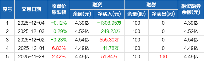 同济科技:融资净偿还1303.95万元,融资余额4.39亿元(12-04)