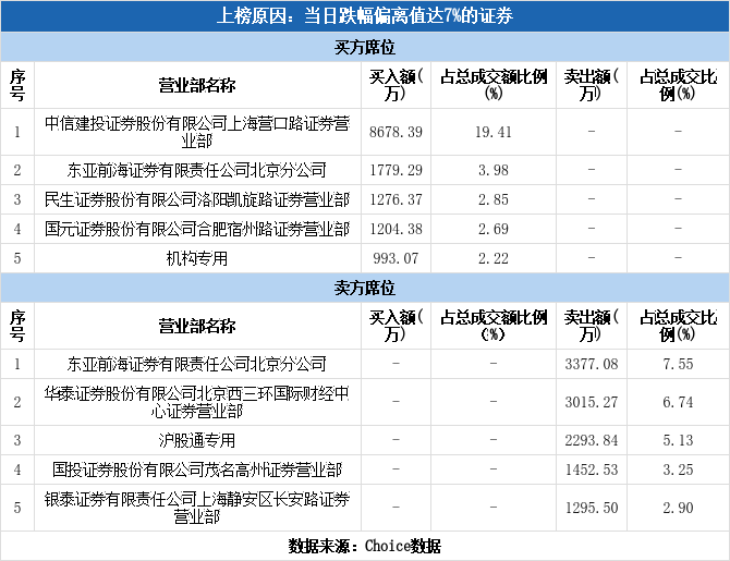 多主力现身龙虎榜,同济科技跌停(12-11)