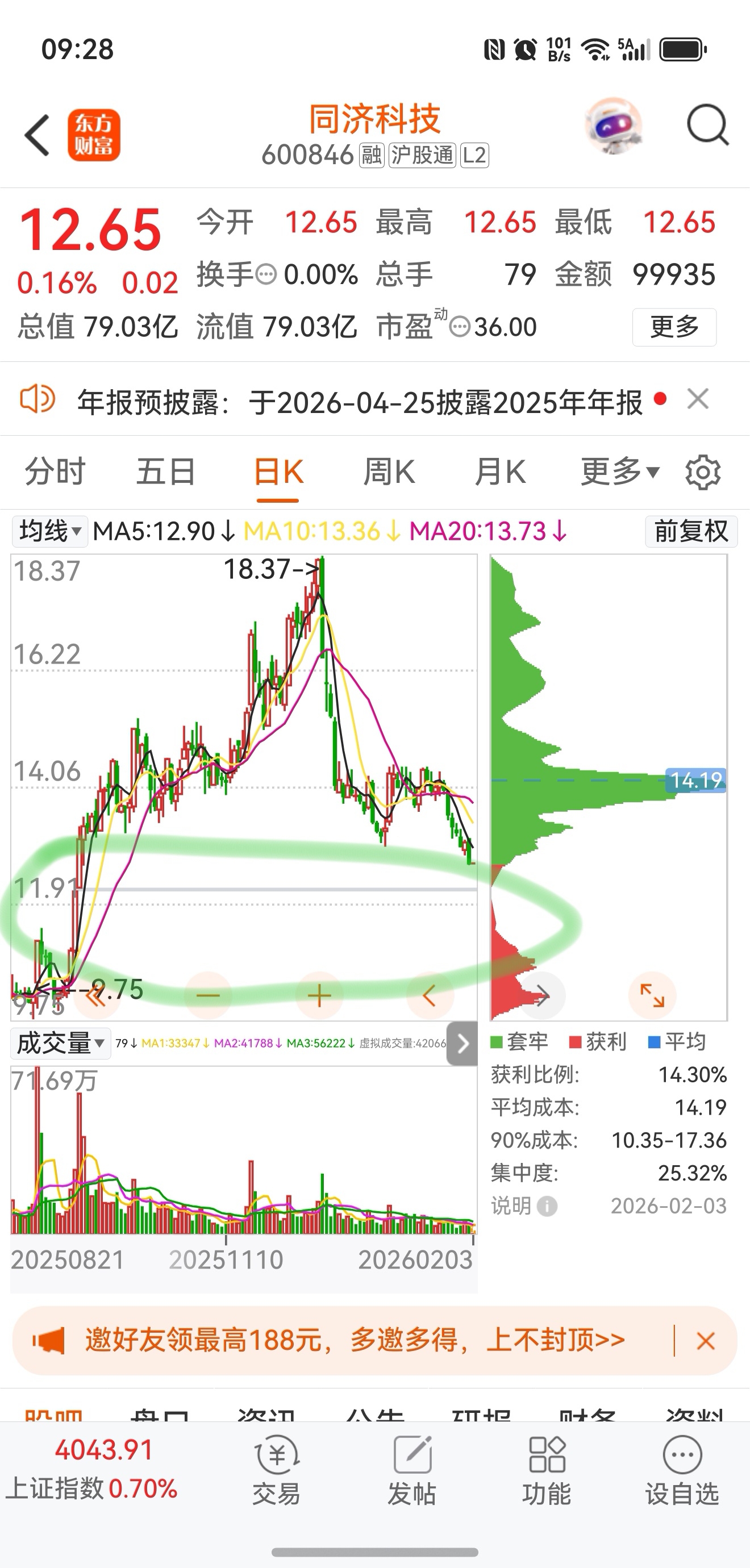$同济科技(SH600846)$ 这个缺口百分百补