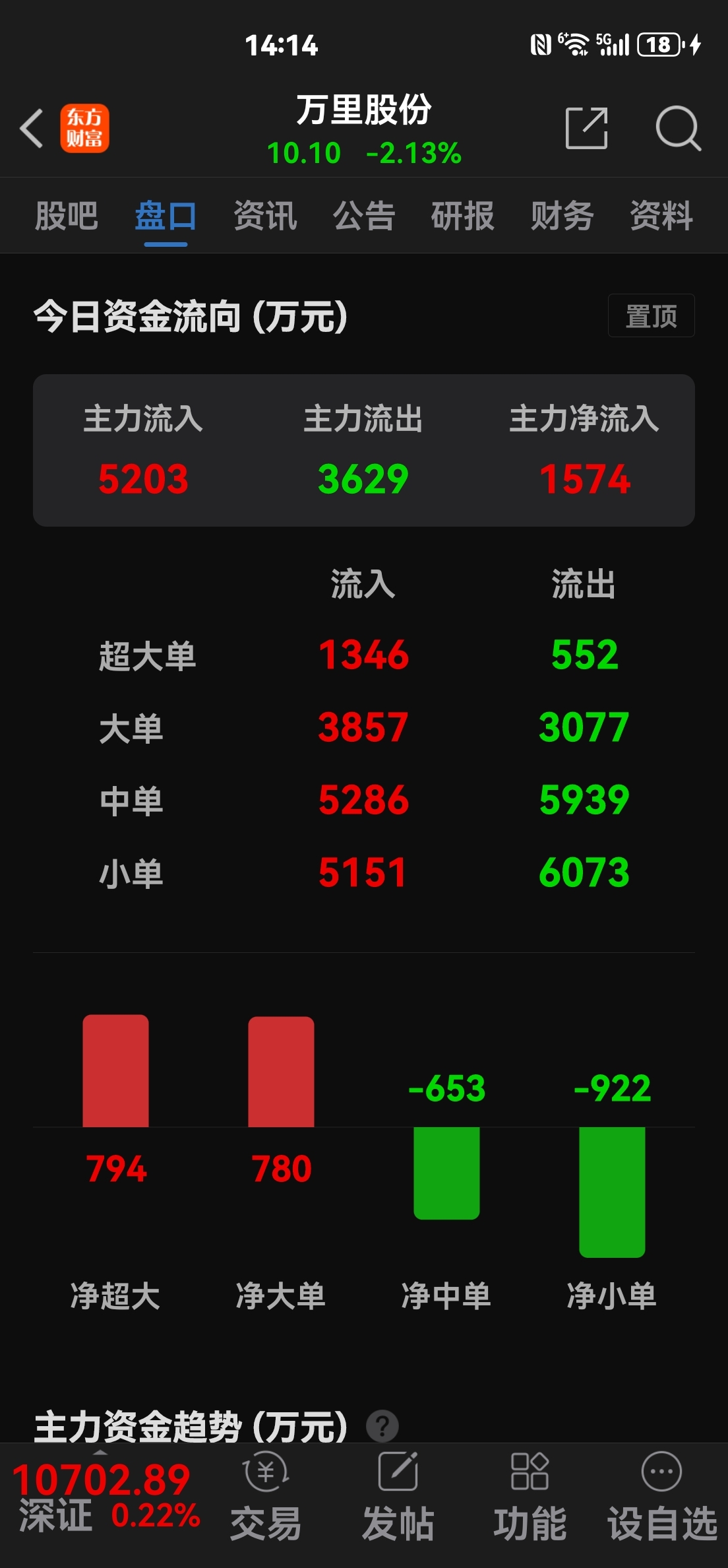 (置顶)为了万里股份,我含泪卖出先达股份,不过有底仓,大伙看万里股份的主力资金图
