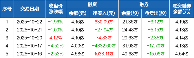 上海临港:融资净买入630.09万元,融资余额4.16亿元(10-22)