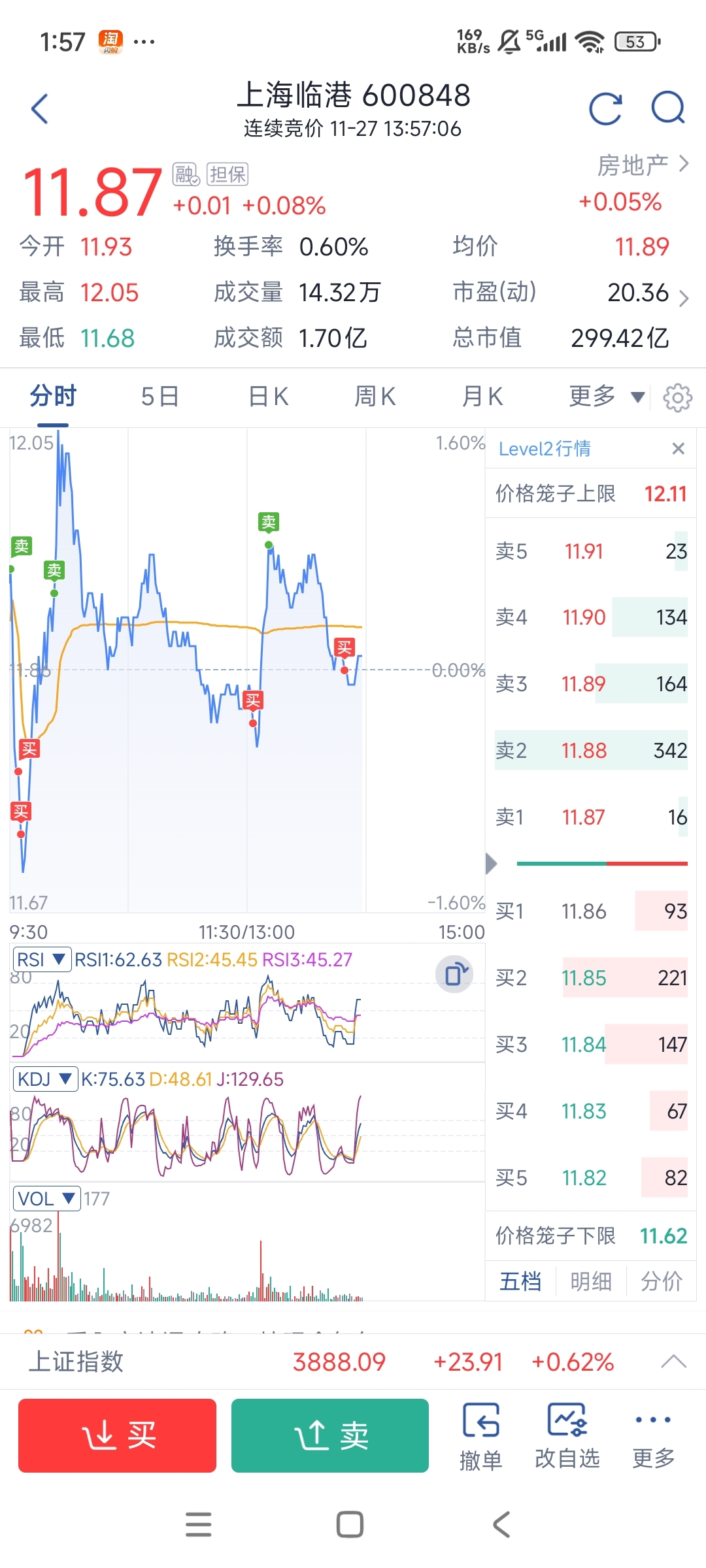 $上海临港(SH600848)$ 好难T,幅度不够一个点