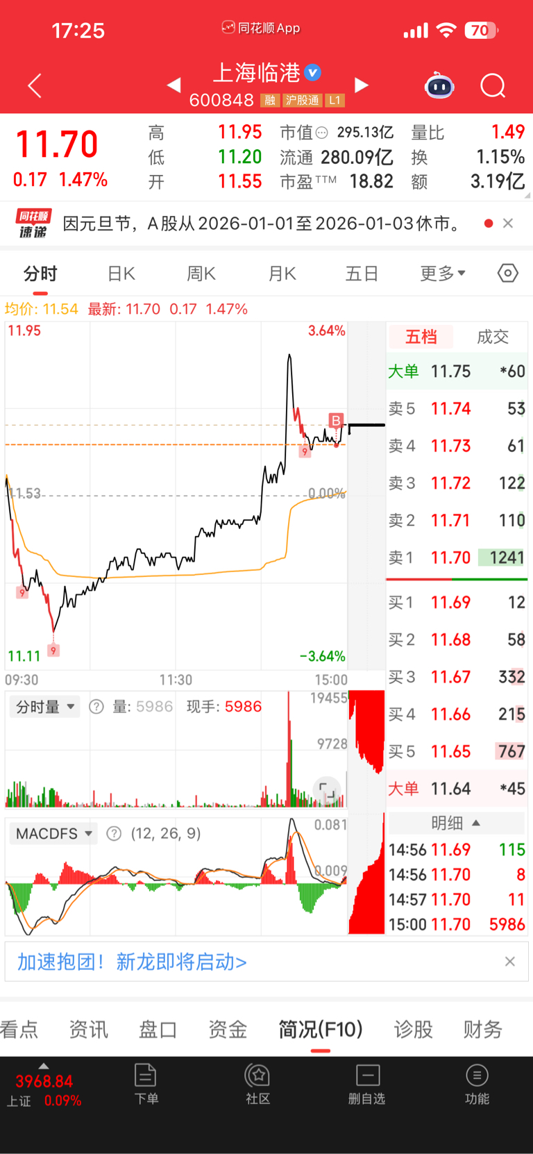 $上海临港(SH600848)$ 2025最后一笔买入,今天壁仞科技上市一度翻倍,周一开盘买不到了
