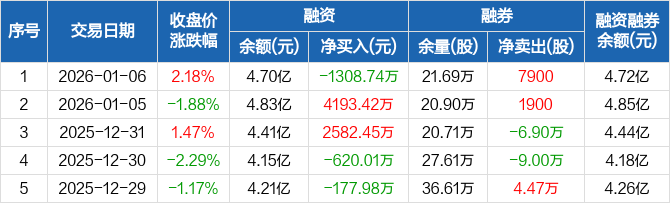 上海临港:融资净偿还1308.74万元,融资余额4.7亿元(01-06)
