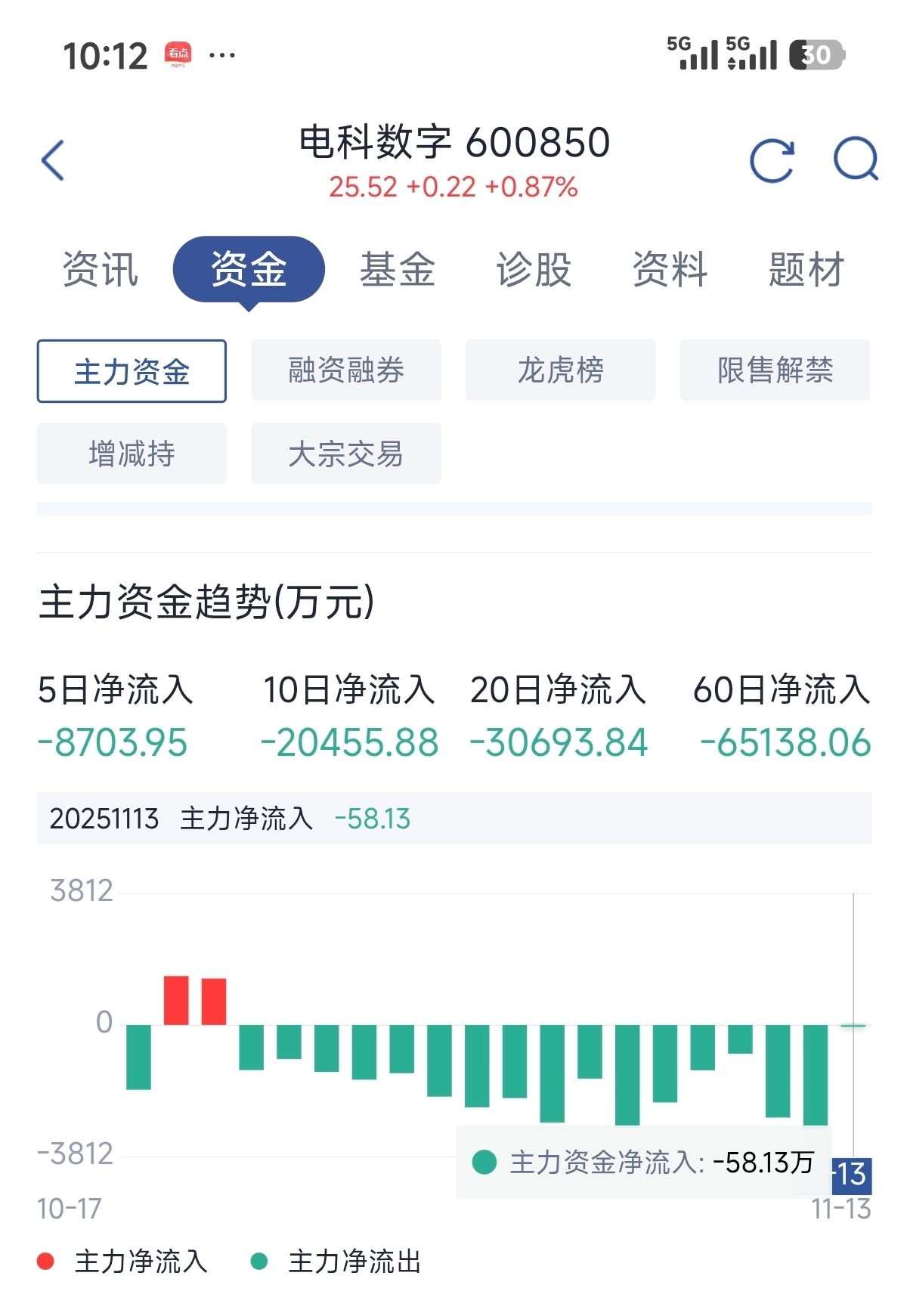 $电科数字(SH600850)$ 主力资金持续流出17天,今天受大盘影响,流出不多,但是结果还是在流出,没有实际影响到股价,明日预测,主力资金流出第18天,完成18层地狱之门构建,明日跌破25,跌幅较大。