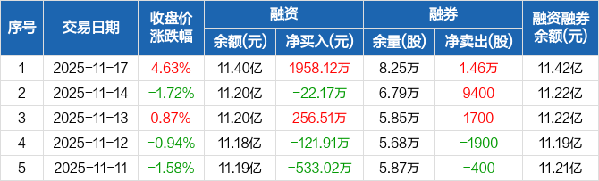 电科数字:融资净买入1958.12万元,融资余额11.4亿元(11-17)