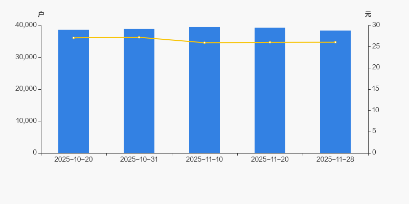 2025年10月20日至今,公司股东户数有所下降,区间跌幅为0.54%。2025年10月20日至2025年11月28日区间股价下降3.81%。