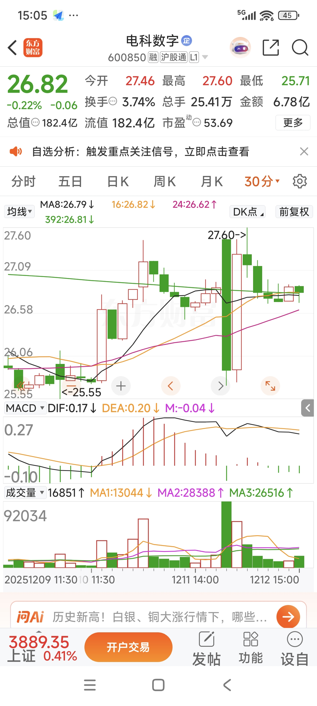 收盘了26.82,你看看,我下午盘中怎说的?他在确认26.82,呵呵,服不服?