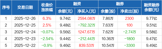 电科数字:融资净买入2594.08万元,融资余额9.74亿元(12-26)