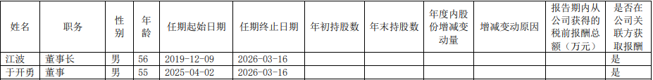江波、于开勇两人的原定任期至2026年3月16日。