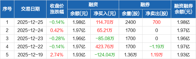 海欣股份:融资净买入114.7万元,融资余额1.98亿元(12-25)