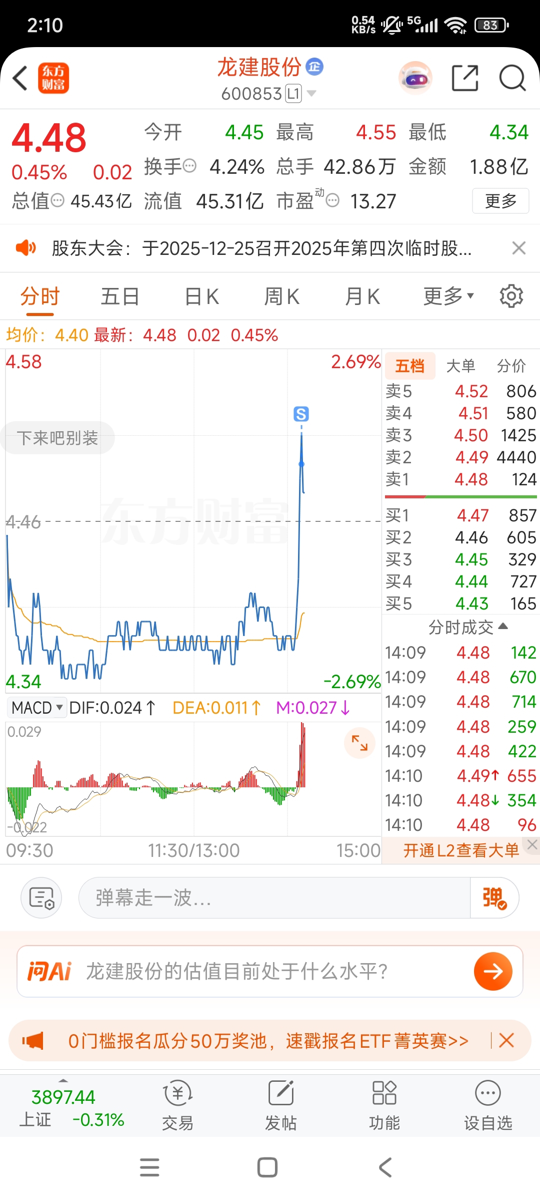 $龙建股份(SH600853)$ 4.50清仓了,三天两头4000家左右下跌,想赚钱真难
