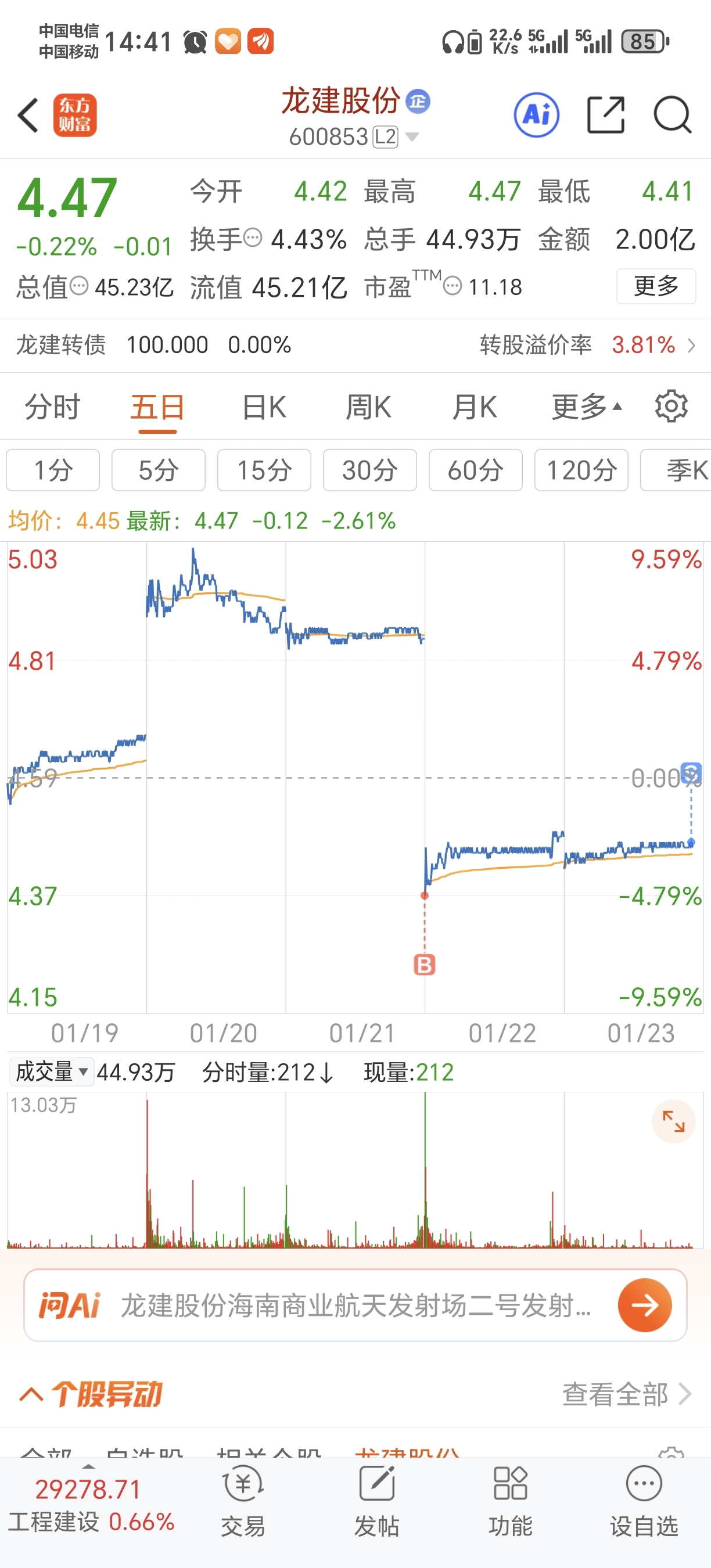 $龙建股份(SH600853)$ 主力控盘很牛逼,僵尸股,挣你8分钱,浪费我两天时间