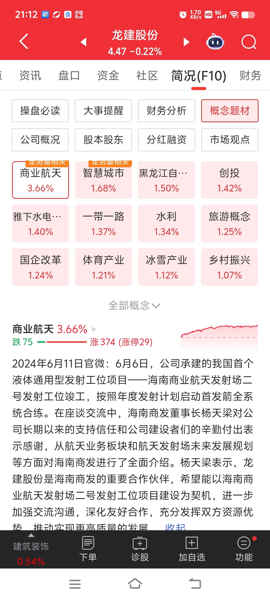 $龙建股份(SH600853)$ 同花顺和民生证券都有商业航天概念,东方财富上没有!