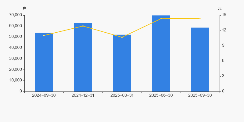 截至2025年9月30日,公司最新总股本为4.69亿股,其中流通股本为4.68亿股。户均持有流通股数量由上期的6693股上升至7975股,户均流通市值11.46万元。