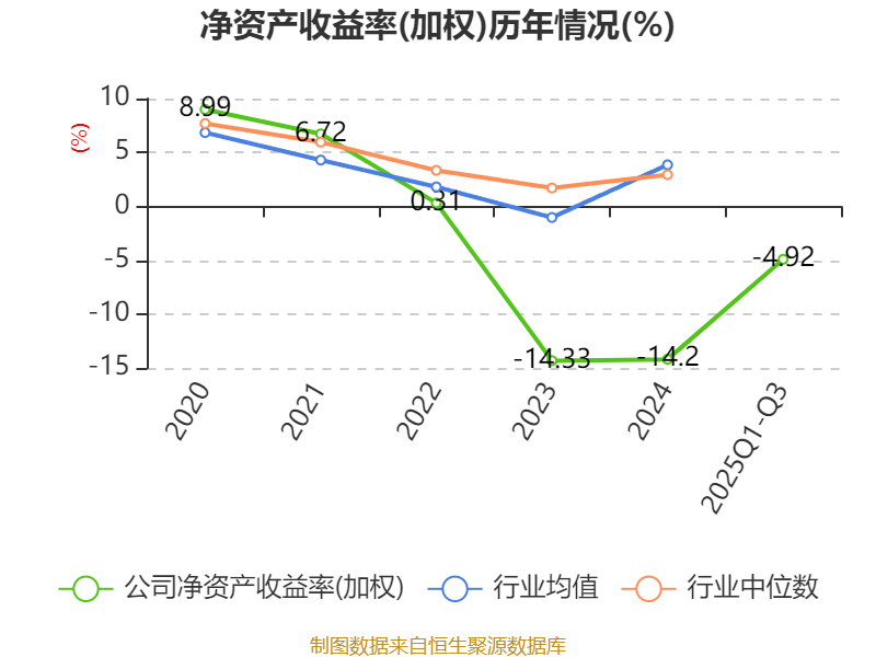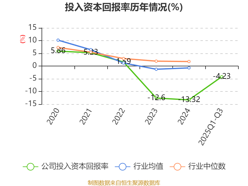 盈利能力方面, 2025年前三季度公司加权平均净资产收益率为-4.92%,同比上升0.59个百分点。公司2025年前三季度投入资本回报率为-4.23%,较上年同期上升0.47个百分点。