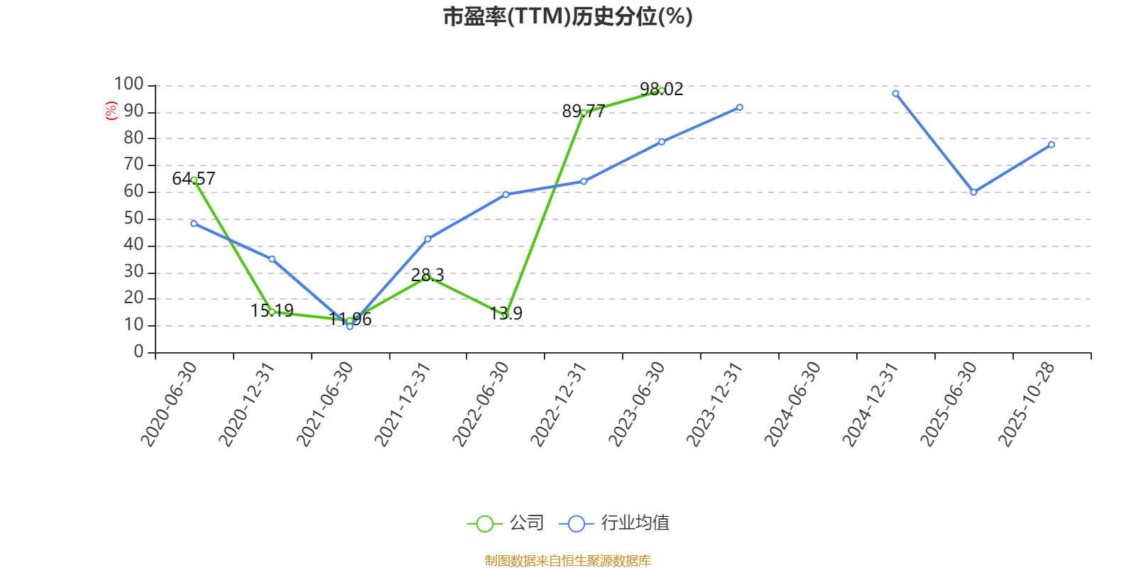 市盈率、市净率为负时,不显示当期分位数,会导致折线图中断。