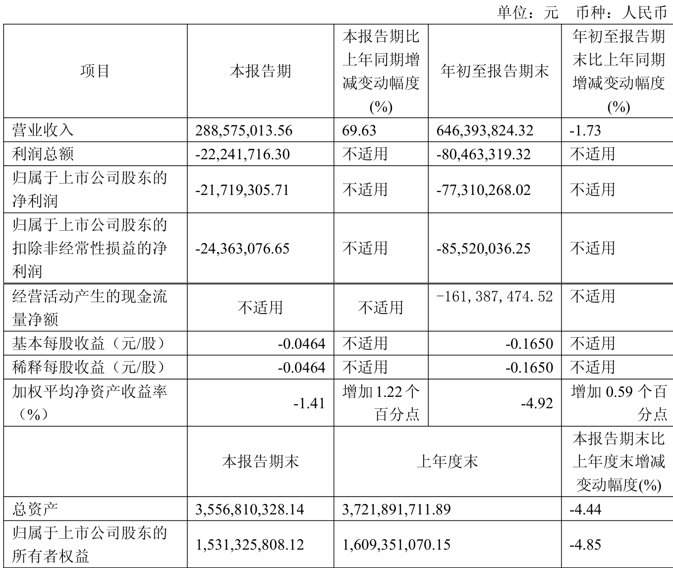 中证智能财讯航天长峰(600855)10月29日披露2025年第三季度报告。前三季度公司实现营业总收入6.46亿元,同比下降1.73%;归母净利润亏损7731.03万元,上年同期亏损9944.64万元;扣非净利润亏损8552万元,上年同期亏损1.11亿元;经营活动产生的现金流量净额为-1.61亿元,上年同期为-4709.96万元;报告期内,航天长峰基本每股收益为-0.165元,加权平均净资产收益率为-4.92%。