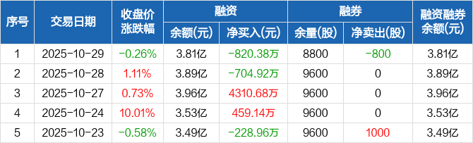 航天长峰:融资净偿还820.38万元,融资余额3.81亿元(10-29)