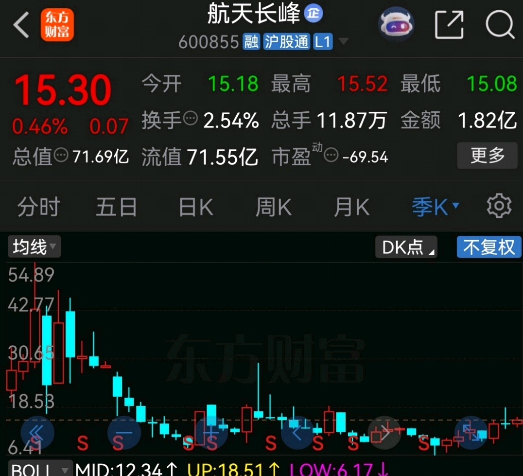 业绩在减亏,业绩公告完后,后面交给技术面上本季度四季度航天长峰冲击18.4—19