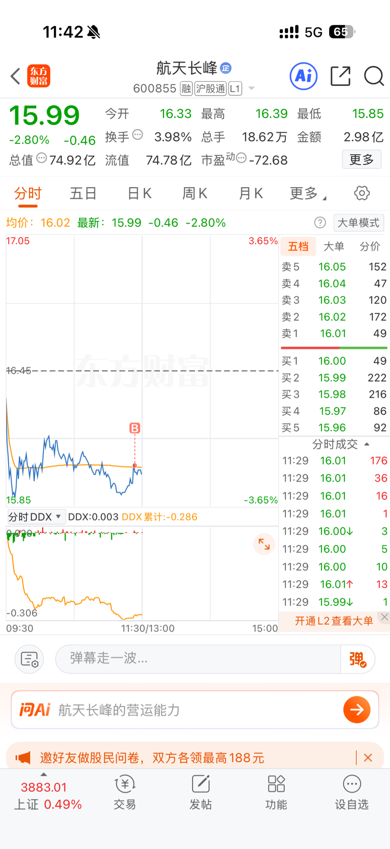 $航天长峰(SH600855)$ 我就买了!有种跌停