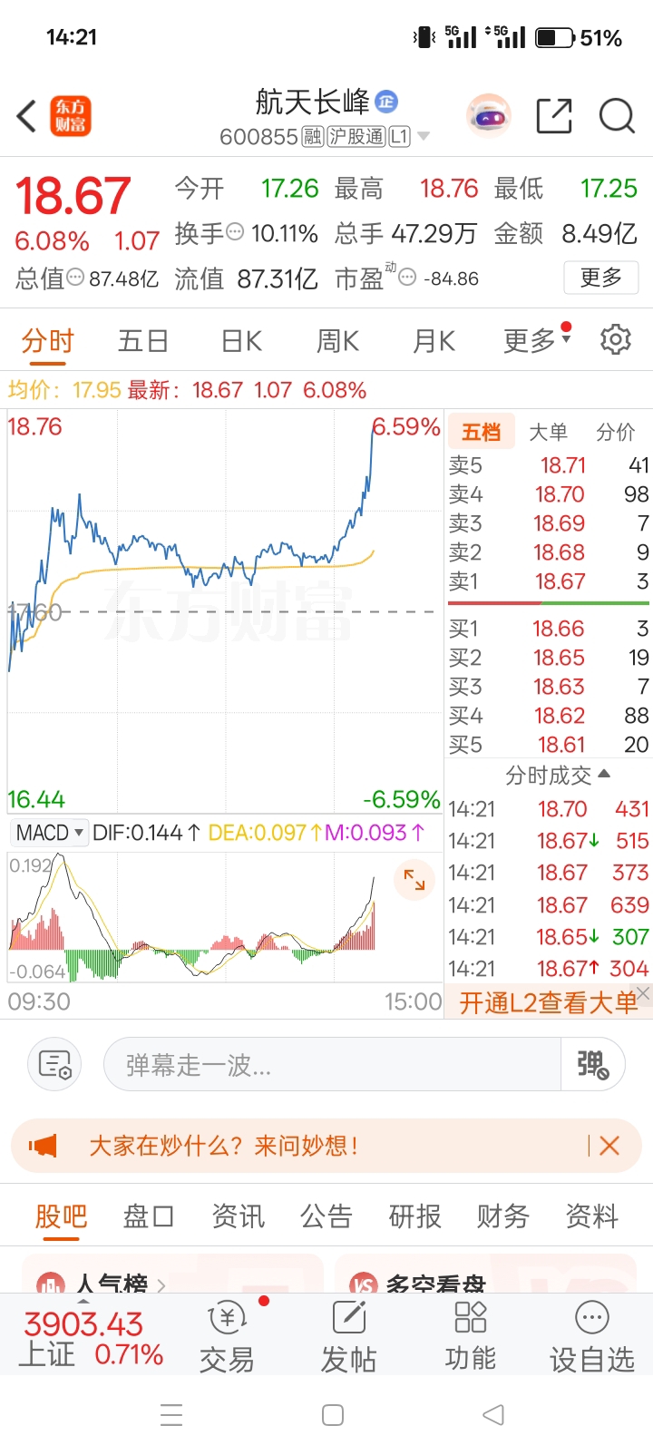 $航天长峰(SH600855)$ 上午通知18附近进的朋友继续拿好。长峰大哥,带你起飞一起吃肉