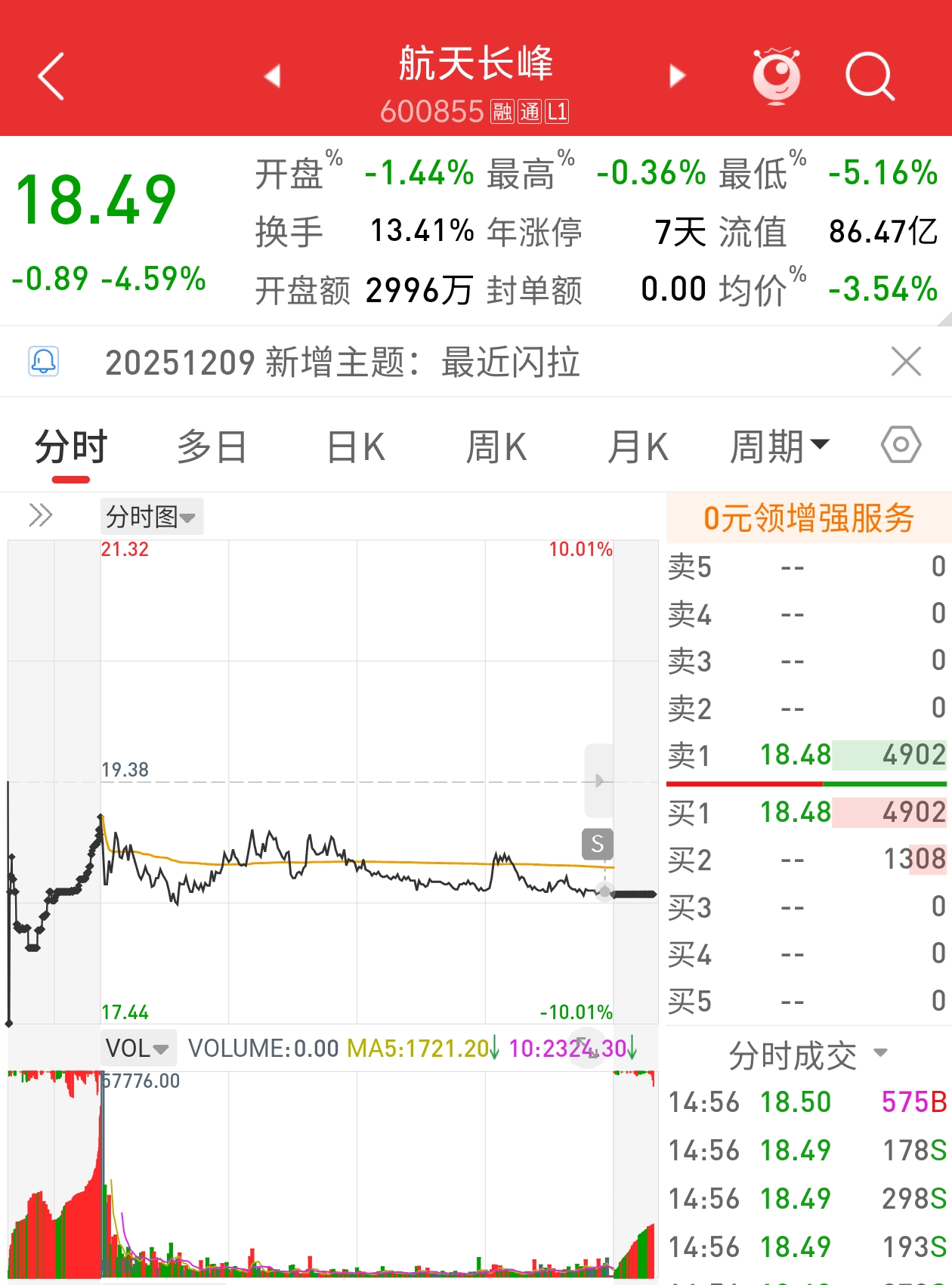 $航天长峰(SH600855)$ 三次-2%没走,最低价割了,真服了