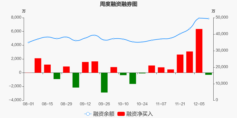 航天长峰本周(2025/12/08-2025/12/12)累计涨幅达10.24%,截至12月12日最新股价报收20.34元。从增量上来看,12月8日至12月12日融资买入交易规模7.26亿元,融资偿还规模7.29亿元,期内融资净偿还297.13万元。从存量上来看,截止12月14日,航天长峰融资融券余额4.95亿元,其中融资余额规模4.94亿元,融券余额规模19.53万元。