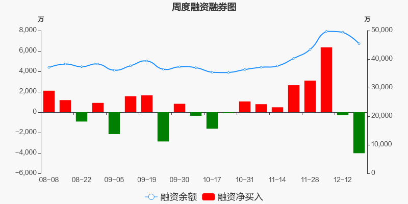 航天长峰本周(2025/12/15-2025/12/19)累计跌幅达4.47%,截至12月19日最新股价报收19.43元。从增量上来看,12月15日至12月19日融资买入交易规模6.47亿元,融资偿还规模6.87亿元,期内融资净偿还4017.91万元。从存量上来看,截止12月21日,航天长峰融资融券余额4.54亿元,其中融资余额规模4.54亿元,融券余额规模23.51万元。