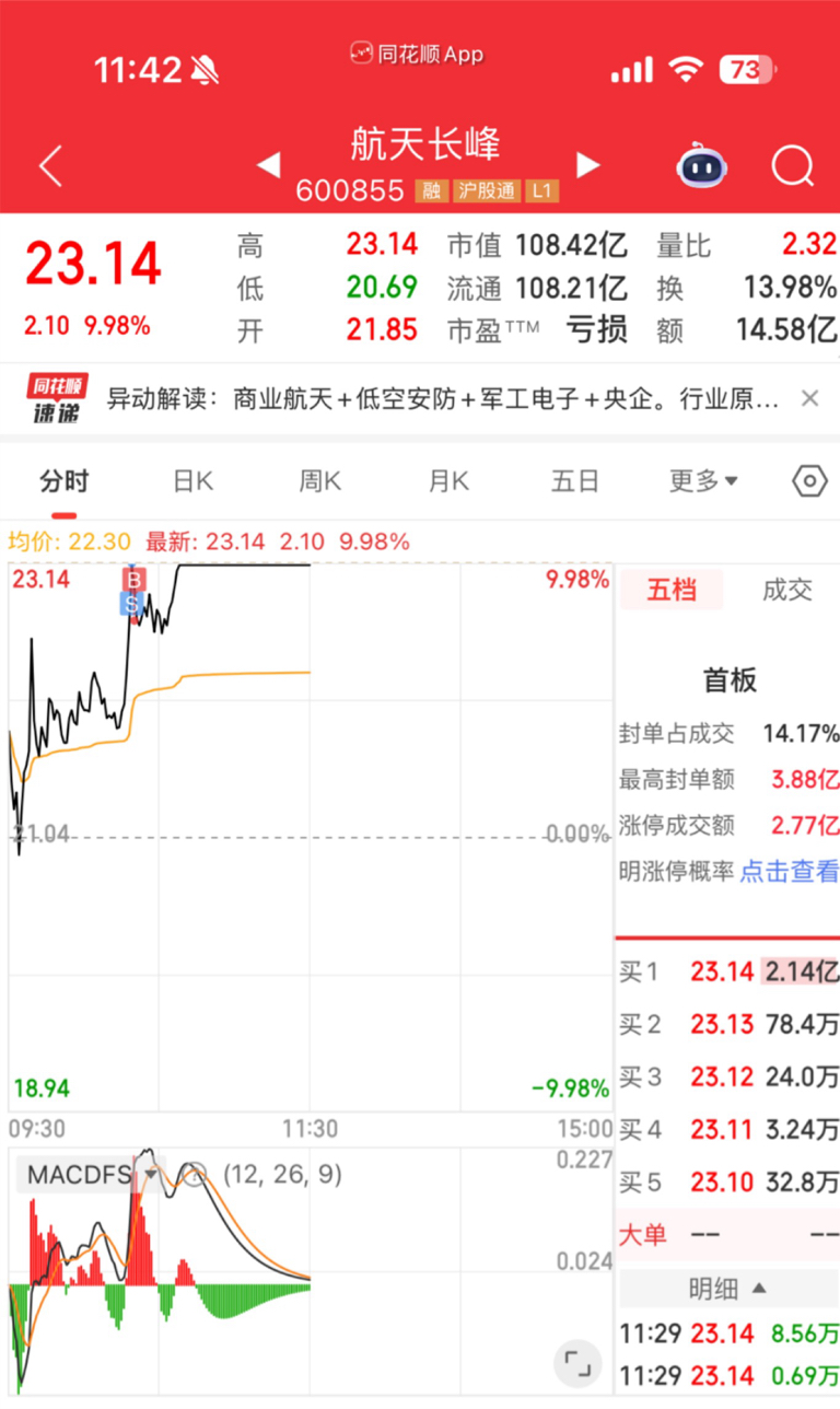 $航天长峰(SH600855)$ 涨停卖了8个点接回来,赚了12个点